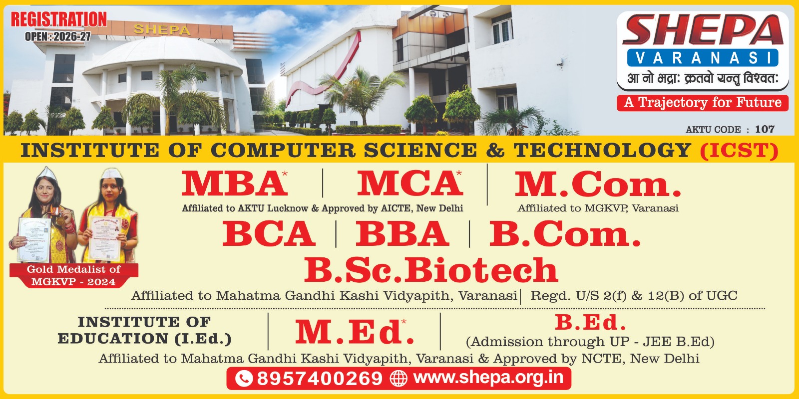 Approved Intake : 40 Affiliation : Dr. APJ Abdul Kalam Technical University, Lucknow (Formerly U.P. Technical University) College Code : 107 Approval : All India Council for Technical Education Duration : 2 Years (4 Semester) Eligibility : Passed B.C.A/ B.Sc. (Computer Science)/ B.Sc. (IT) / B.E. (CSE)/ B.Tech. (CSE) / B.E. (IT) / B.Tech. (IT) or equivalent Degree. Or Passed any graduation…